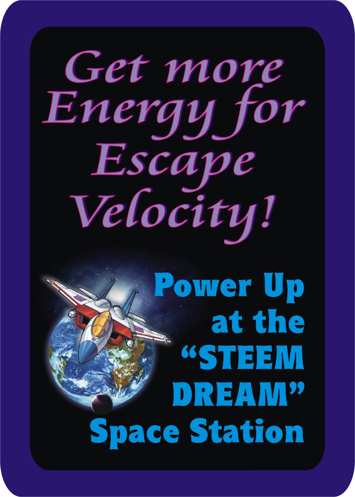 Whereas the Steemjet Cards direct you to your next destination, the Escape Velociy cards distracts your, while the Steem Dream cards delivers you from the pitfall of Escape Velocity,” so you can continue your journey by scheming your plate systematically through the 6 steps it will take you to reach your final destination which is actually where your plate first stepped out in the course of your scheming your plate the Jet Base.