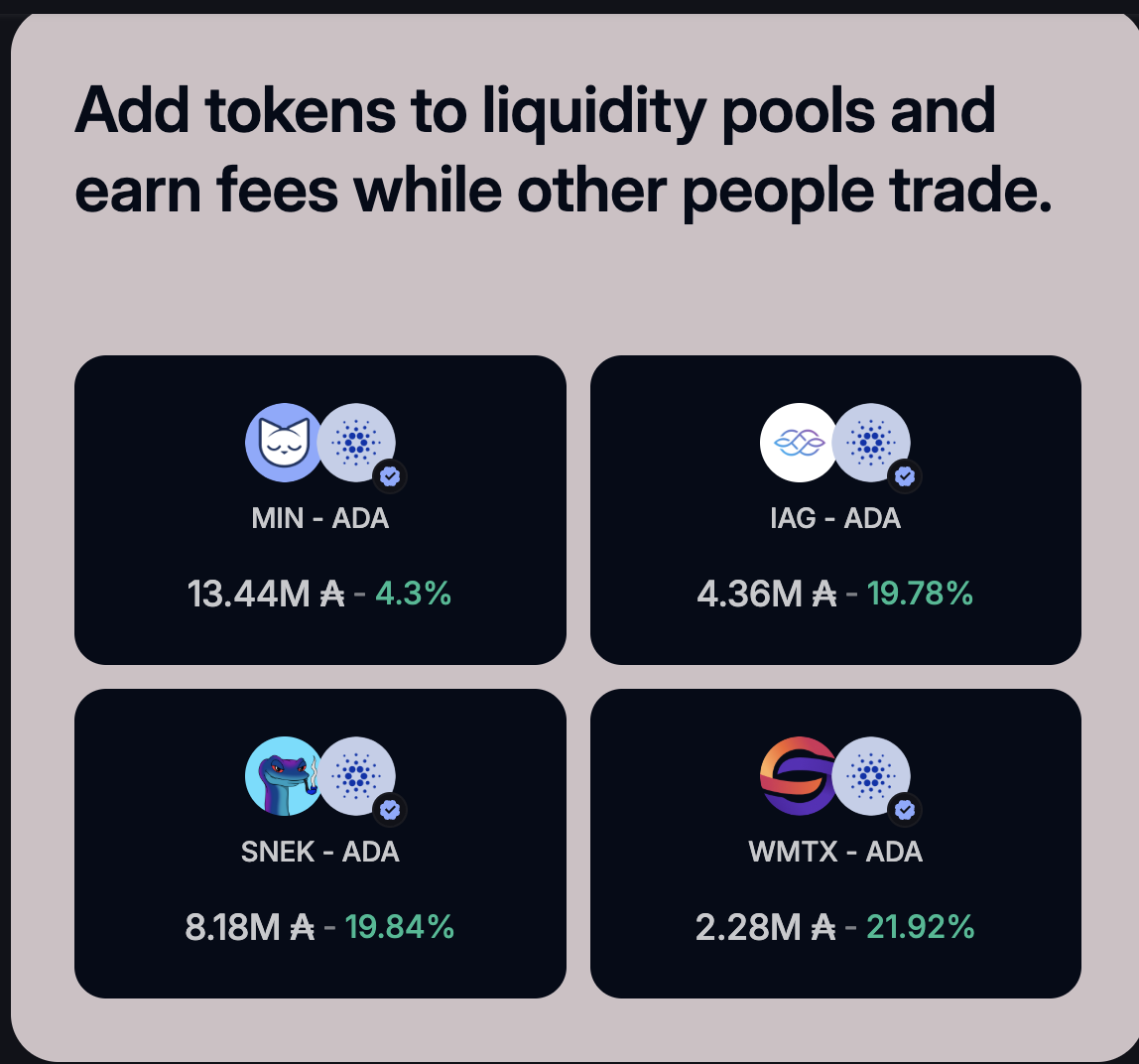 En este post les comparto algunas opciones de inversión que he descubierto recientemente en el ecosistema de ADA a través del Exchange descentralizado minswap.