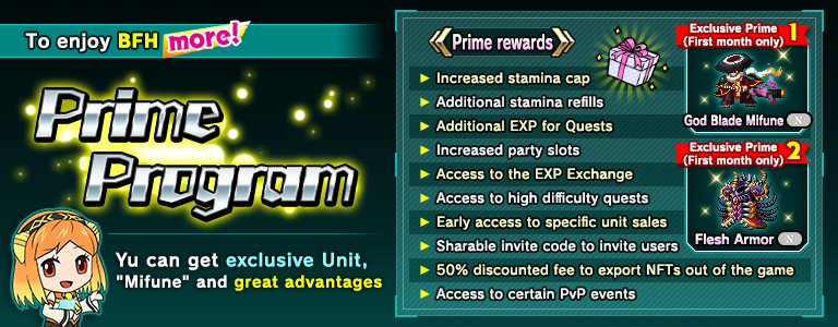 - Receive God Blade Mifune (Novice unit) when you join Prime for the first time.
