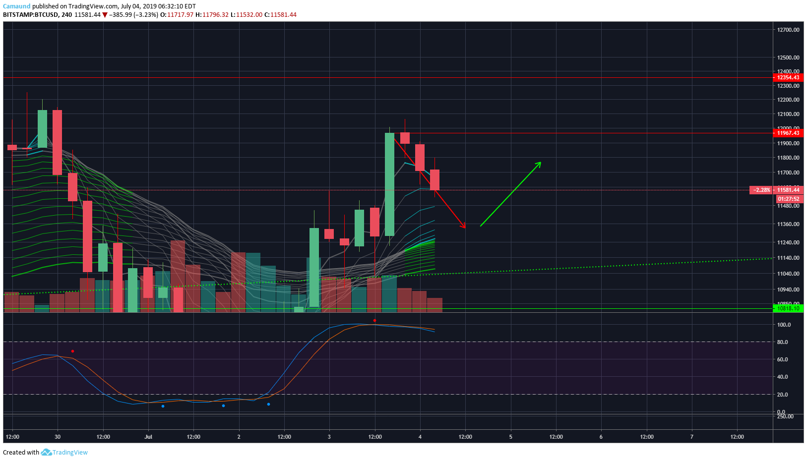 I see a good trade forming if we get a bounce between 11,350 to 11,100, it is important to always wait for the bounce, even if we don't get a perfect long. Always wait for confirmation, using the Stoch RSI can also help to when to open the trade.