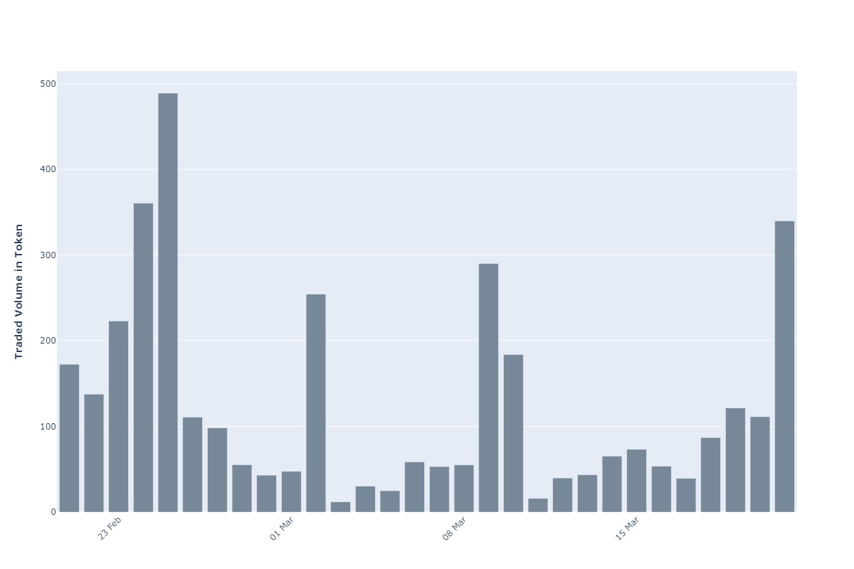 For the chart below, I did issue data from Feb 21th 2020 until Mar 21th 2020 at 12 PM/noon. At this time of yesterday, this token had an opening price of 0.2560021, with a day-high of 0.382 and a day-low of 0.250. The closing price was at 0.250.