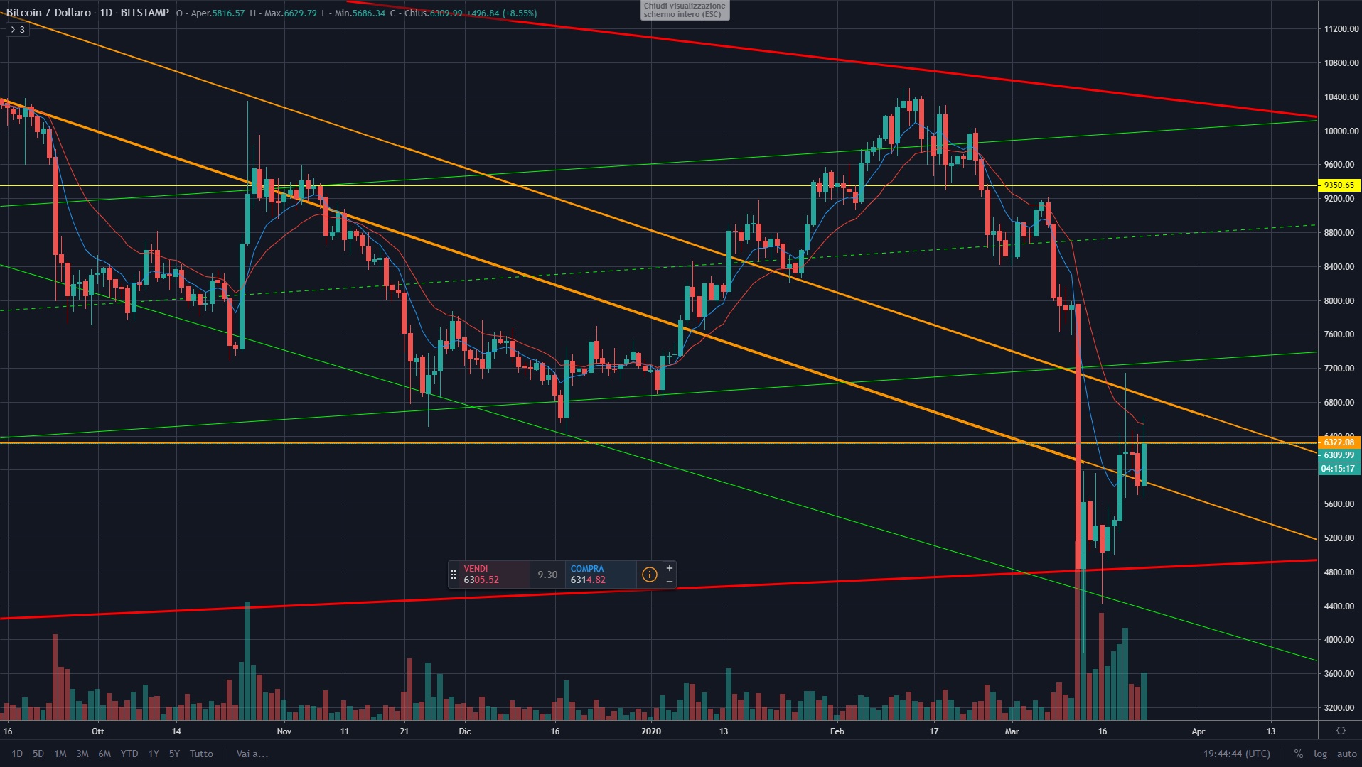 Eseguire dei trade ora è tuttavia rischioso in quanto penso che siamo purtroppo anche in balia di ciò che sta succedendo nel mondo "normale" ed un ulteriore collasso dei principali titoli potrà influire negativamente anche sul mondo delle criptovalute.