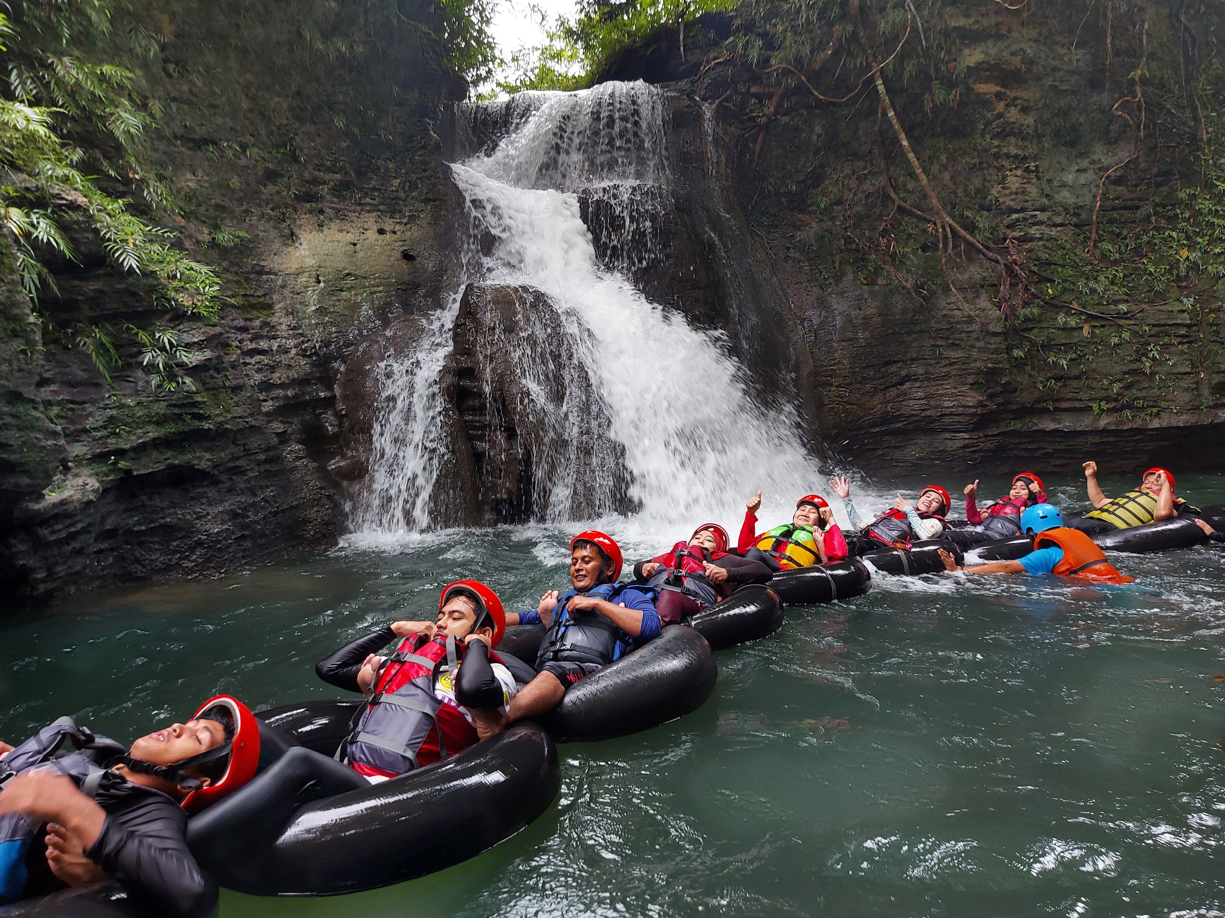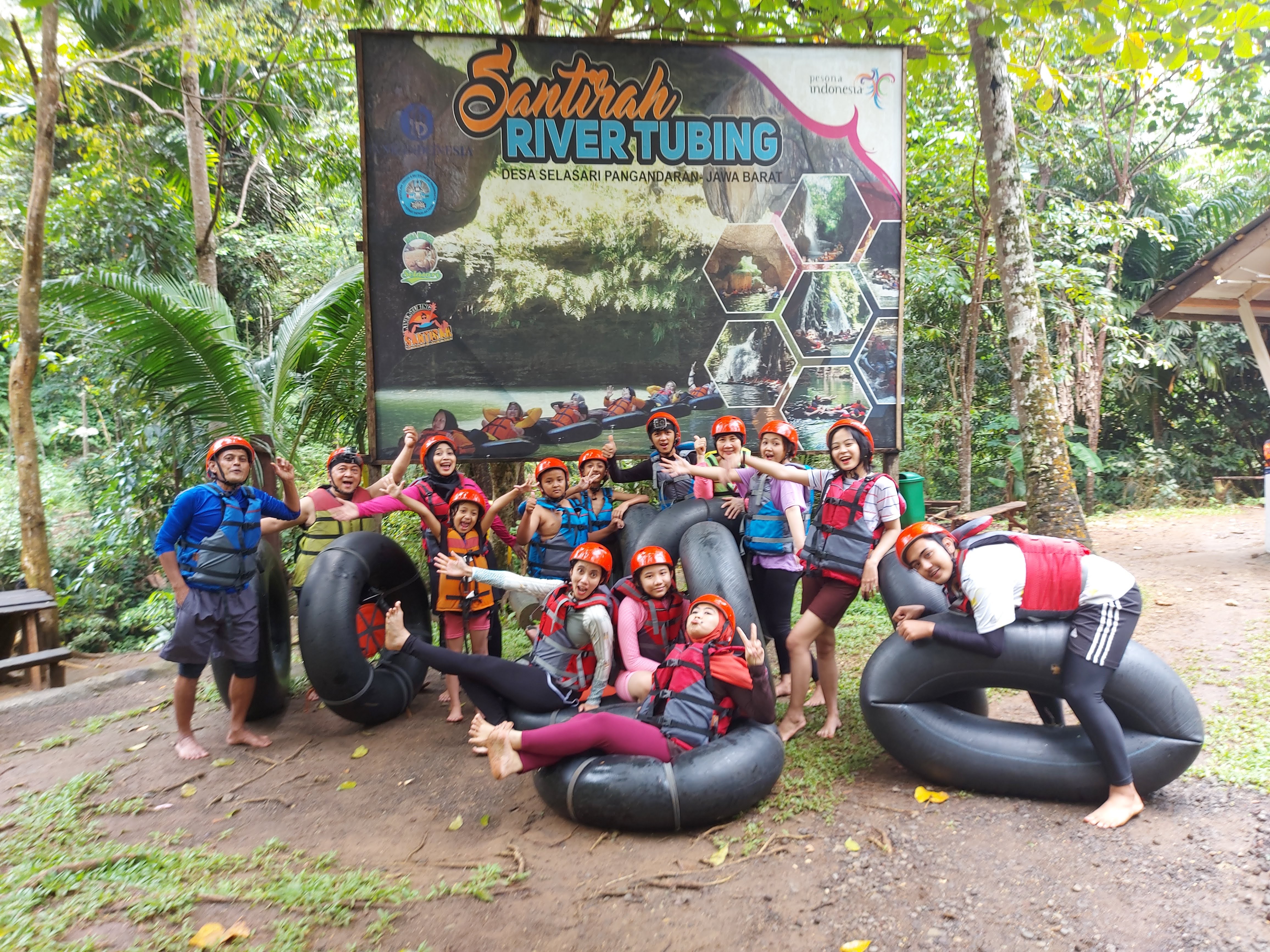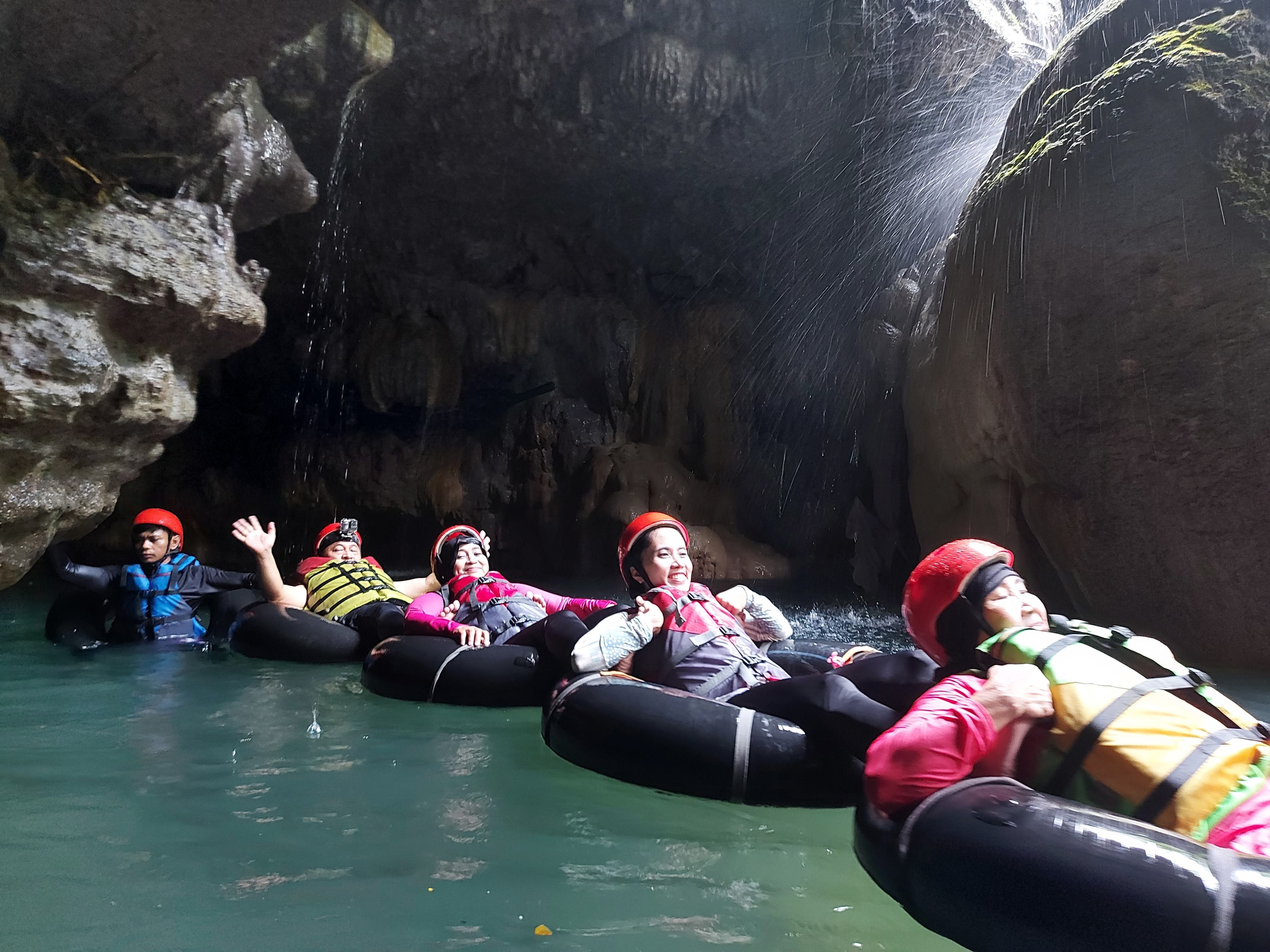 Pada hari-hari biasa sebelum corona tiba, river tubing di sini konon cukup ramai. Apalagi jika libur lebaran. Menurut Apep, salah satu guide, saat peak season bisa mencapai maksimal 300-an orang. Tidak boleh ditambah lagi. Dengan jumlah keseluruhan guide 70 orang, mereka bisa 3-4 kali bolak-balik mengawal para wisatawan berhanyut arus dalam trek sepanjang 2 km ini. Sudah barang tentu, di masa itu mereka pasti kelelahan bahkan bisa jadi tidak sempat atau telat makan. Jika pengunjung membludak, mereka yang baru rehat sejenak, sudah dipanggil bertugas. Terbayang kan bagaimana ketahanan fisik harus selalu prima demi keselamatan para pengunjung!