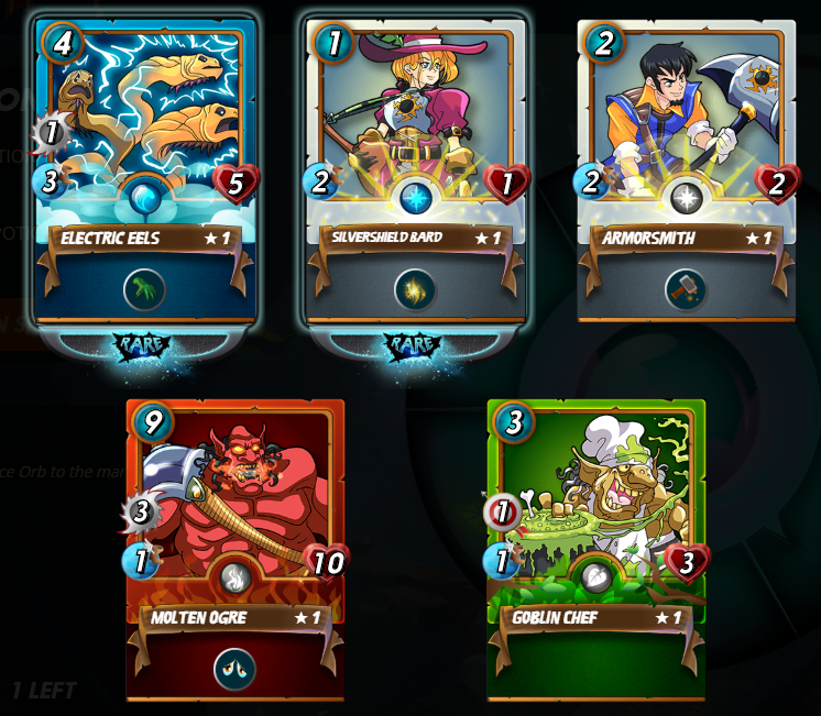 1 Epic, 1 rare and 3 commons
