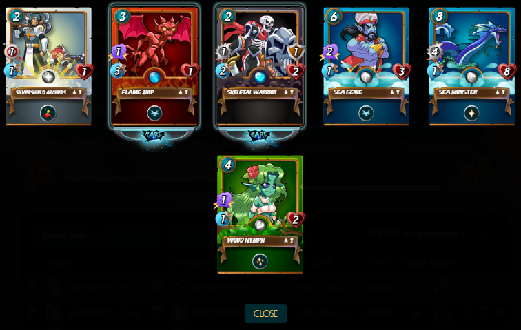 Начал я этот день в лиге Золото 3 с 2038 очками, выпал квест за саммонера Воды, после того, как я сменил саммонера Смерти – я не очень люблю воду, поэтому проходить квест было достаточно сложно. Проиграл 55 очков – прервалась череда профитных дней, жаль конечно. Закончил день с 1983 очками. Награда сегодня не очень хорошая – 2 карточки раре, но дешевые, из хорошего морской монстр и лесная фея.