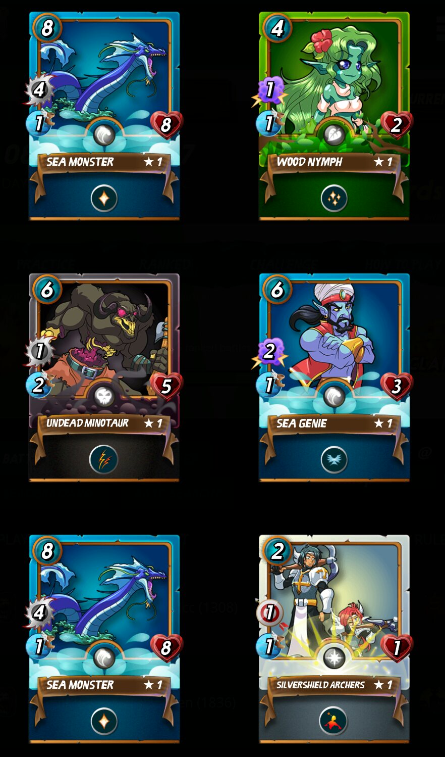 No fueron cartas doradas ni legendarias pero al menos me salieron 2 tipos de cartas que me gustan y utilizo mucho y son el sea monsters y el wood nymph.