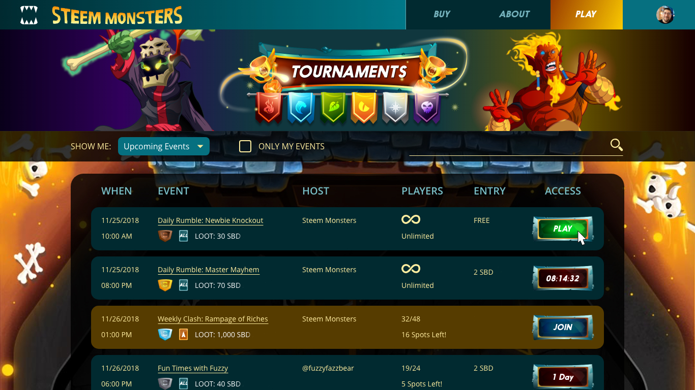 - Before jumping into some of the more technical aspects of tournaments - let's get high level for a second. For those who are new to Steem Monsters - can you give us a quick run down on what the tournaments are and how they are different from what is going on right now?