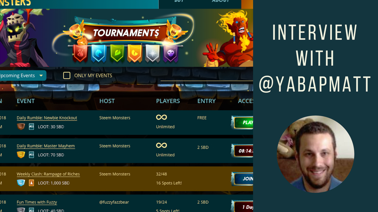 I was super excited to have the opportunity to sit down with Steem Monsters Co-Founder @yabapmatt to discuss everything tournaments related. In fact - He gave me a sneak peak of what the tournament screen could look like! It's so fresh off the press that not even @aggroed had seen it yet.