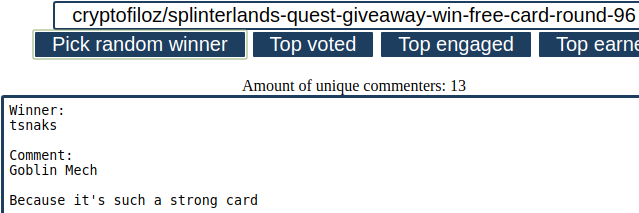 Results of Splinterlands quest giveaway No96: