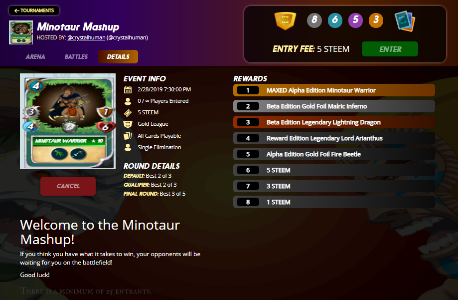 Come battle in the Minotaur Mashup!
