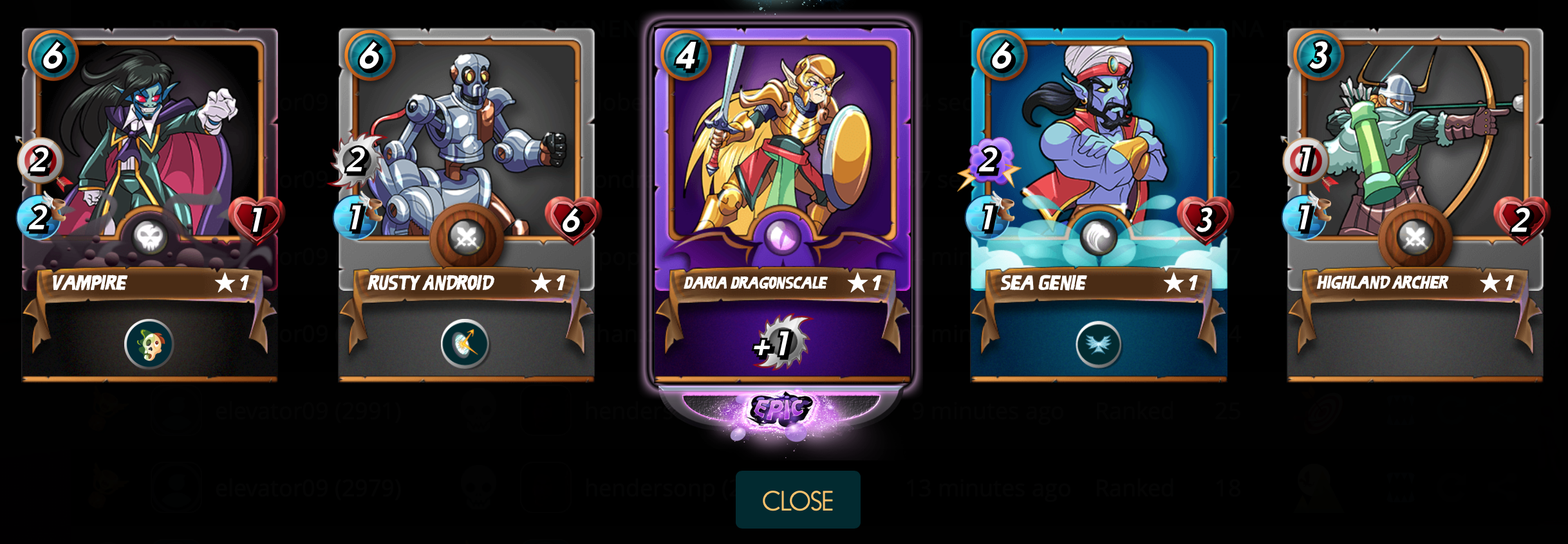 In my post today I want to open two Steem Monsters quest packs. I finished one yesterday, one today and luckily I was able to pull a gold card as well as an epic. Currently I am in the league: Diamond II which will bring me another 65 cards at the end of the season.