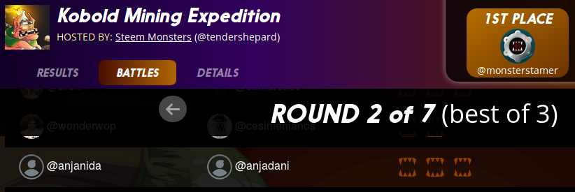 It gets kinda frustrating to see mostly champion level players competing. I've seen them in tournaments with a top prize of 1 Steem. Congratulations on getting to the next round @itisjustme