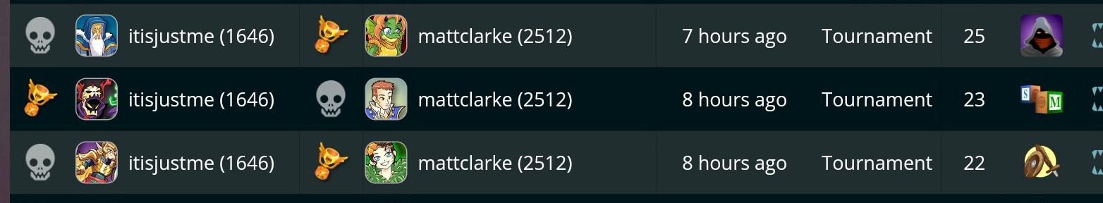 While waiting for the next round to start, I could see that my next opponent would be either my buddy @wonderwop or @mattclarke. I must admit I kept my fingers crossed that it would be @wonderwop, because @mattclarke is just... @mattclarke. :0)