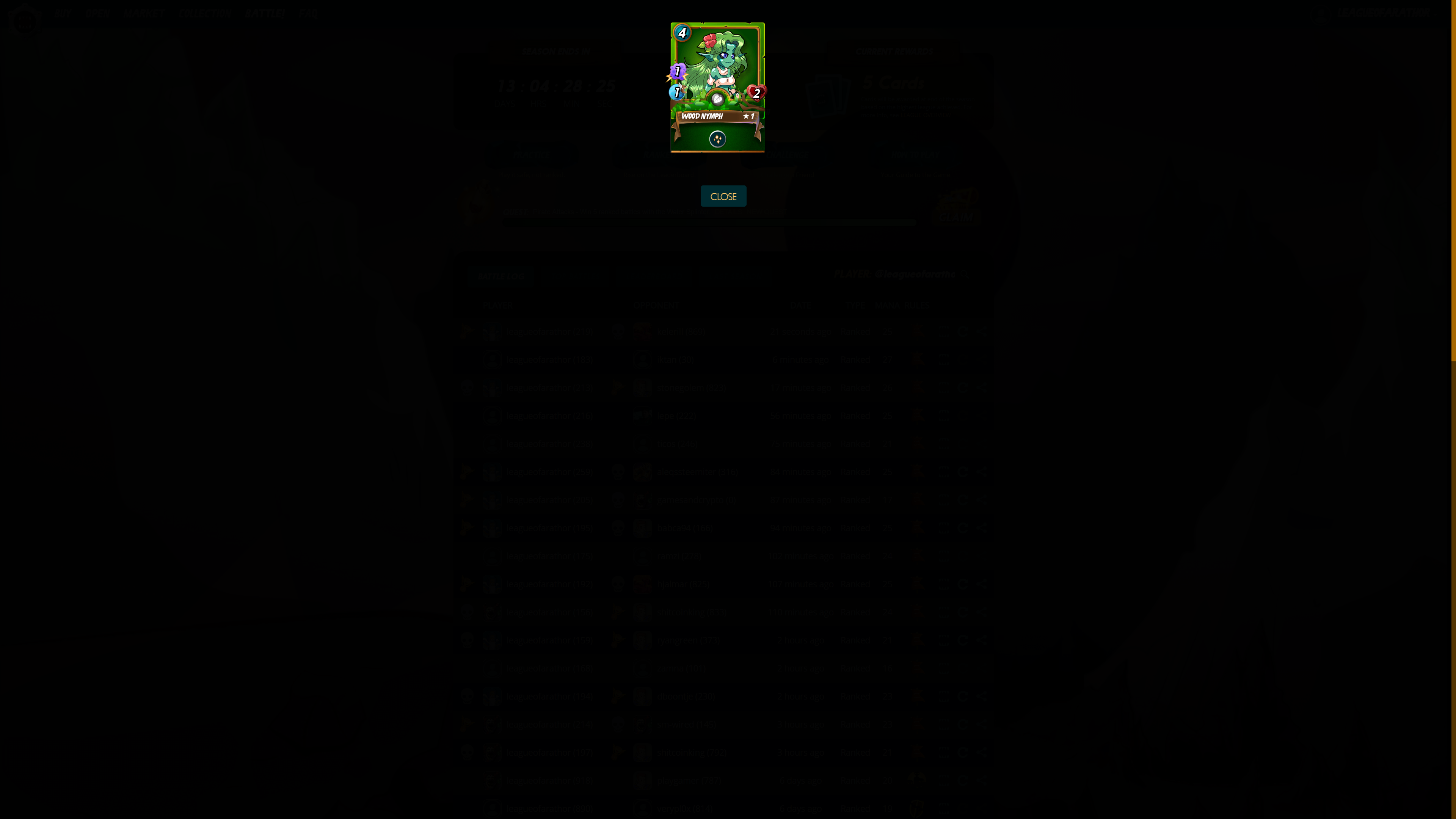 Time to finish my daily quest of Steemmonsters. Within the game I do not have many cards yet but always manage to finish the daily quest. The daily quest consists of 5 battles that have to be won. So you cannot just play five battles. Usually it takes 10 - 25 battles to finish the daily quest, which is fine by me.