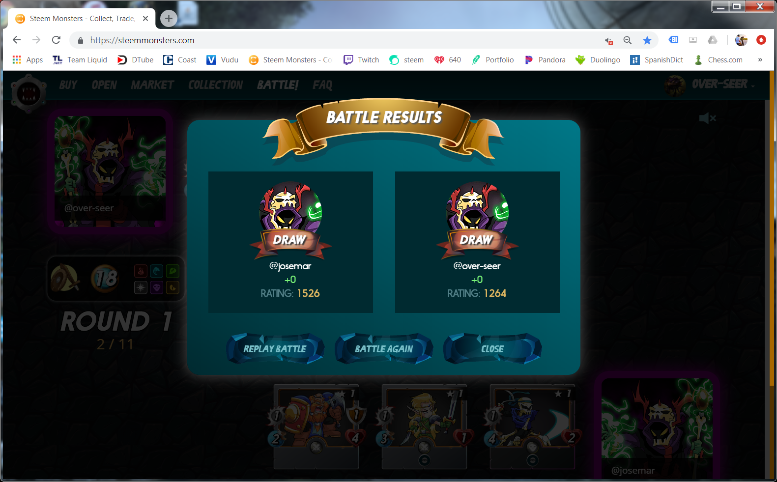 Drawn Game In Steem Monsters!!