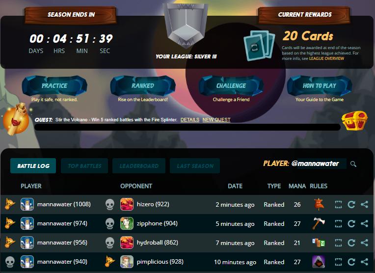 Silver Leaguemannawater (45)in #steemmonsters • 7 years ago Just made it to silver league in time for the league end, haven't played too much this season though but hopefully will get back into it.