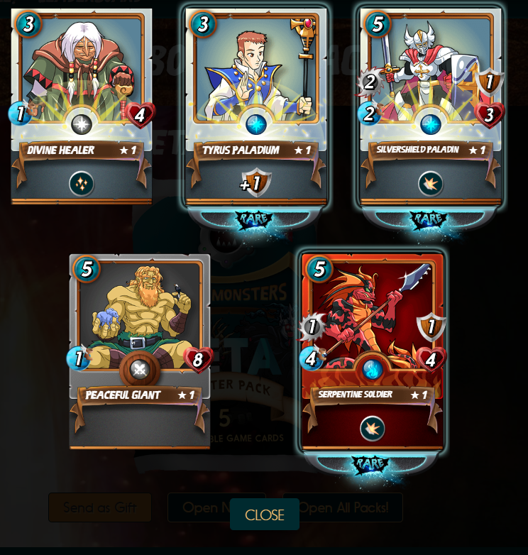 I'm running a 10 day test to see if I can get an ROI on opening Steem Monsters packs. I purchased 10 packs and I'll be showcasing one of the opened packs each day for the next 10 days. In order to determine the value of the cards within the packs, I'll be looking at the Steem Monsters marketplace for the lowest price on the day that I post the pack. I'll then keep a running total value of cards on the days they are presented and compare it to the cost to purchase 10 packs to determine the ROI associated. Pending the results, I may extend this experiment after these original 10 posts.