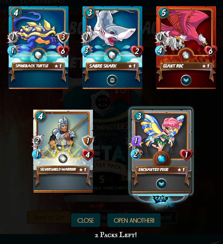 I'm running a 10 day test to see if I can get an ROI on opening Steem Monsters packs. I purchased 10 packs and I'll be showcasing one of the opened packs each day for the next 10 days. In order to determine the value of the cards within the packs, I'll be looking at the Steem Monsters marketplace for the lowest price on the day that I post the pack. I'll then keep a running total value of cards on the days they are presented and compare it to the cost to purchase 10 packs to determine the ROI associated. Pending the results, I may extend this experiment after these original 10 posts.