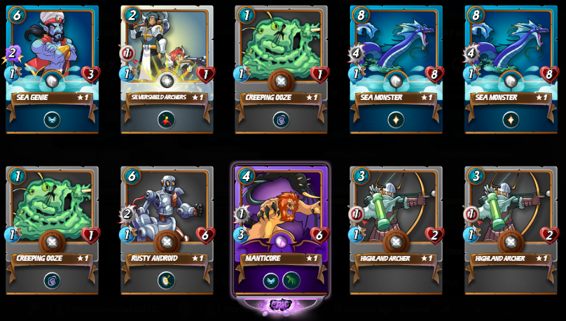 Today I was asked to complete a quest for the Earth Summoner after I decided to change the Death Summoner. I started the day with 2534 points in the Gold 1 league, then went through the quest and finished the day with 2810 points in the League of Diamond 3. The award today was far from the best - one epic card of Manticore, and a couple of sea monsters, the rest of the cards are not very good. Won today, 276 points - a super cool result, if you recall yesterday’s loss of 200 points, then generally mega-super cool ... The award is far from the most rewarding - out of 10 cards only 1 epic and a couple of cards that can be sold a little more than one or two cents .