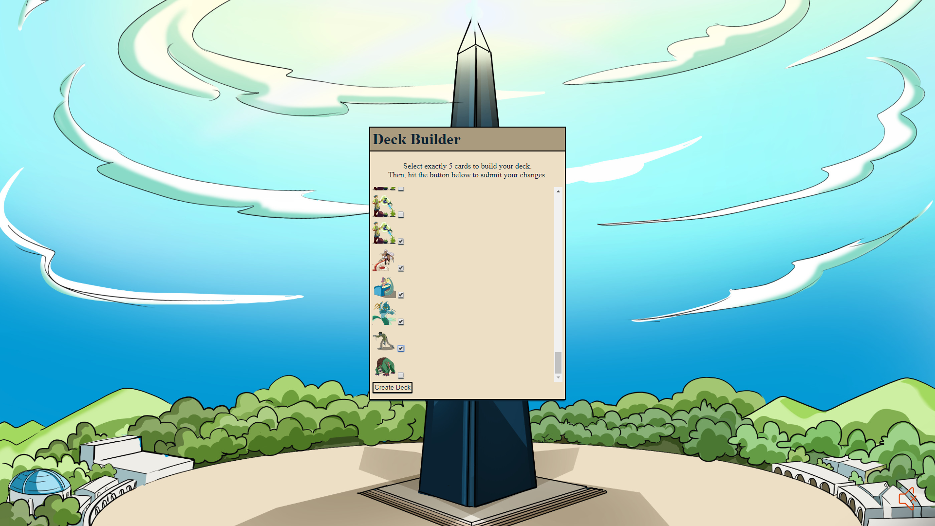 The deck building menu. All monster images were made by @steemmonsters.