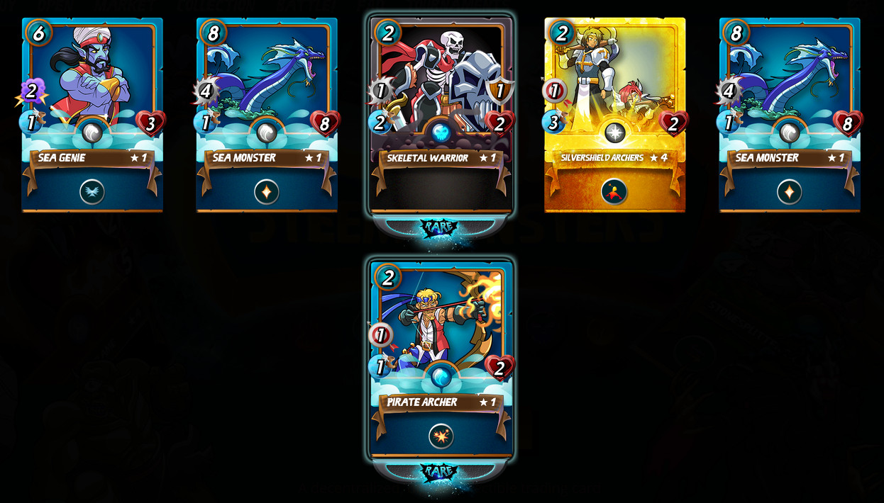 Another season of Steem Monsters wrapped up last night. I made it the Gold II league for the second time and was rewarded 26 cards. The best card that I received was a Gold Ruler of the Seas. Just kidding. April Fools joke. The best card that I actually received was a Gold Silvershield Archers.