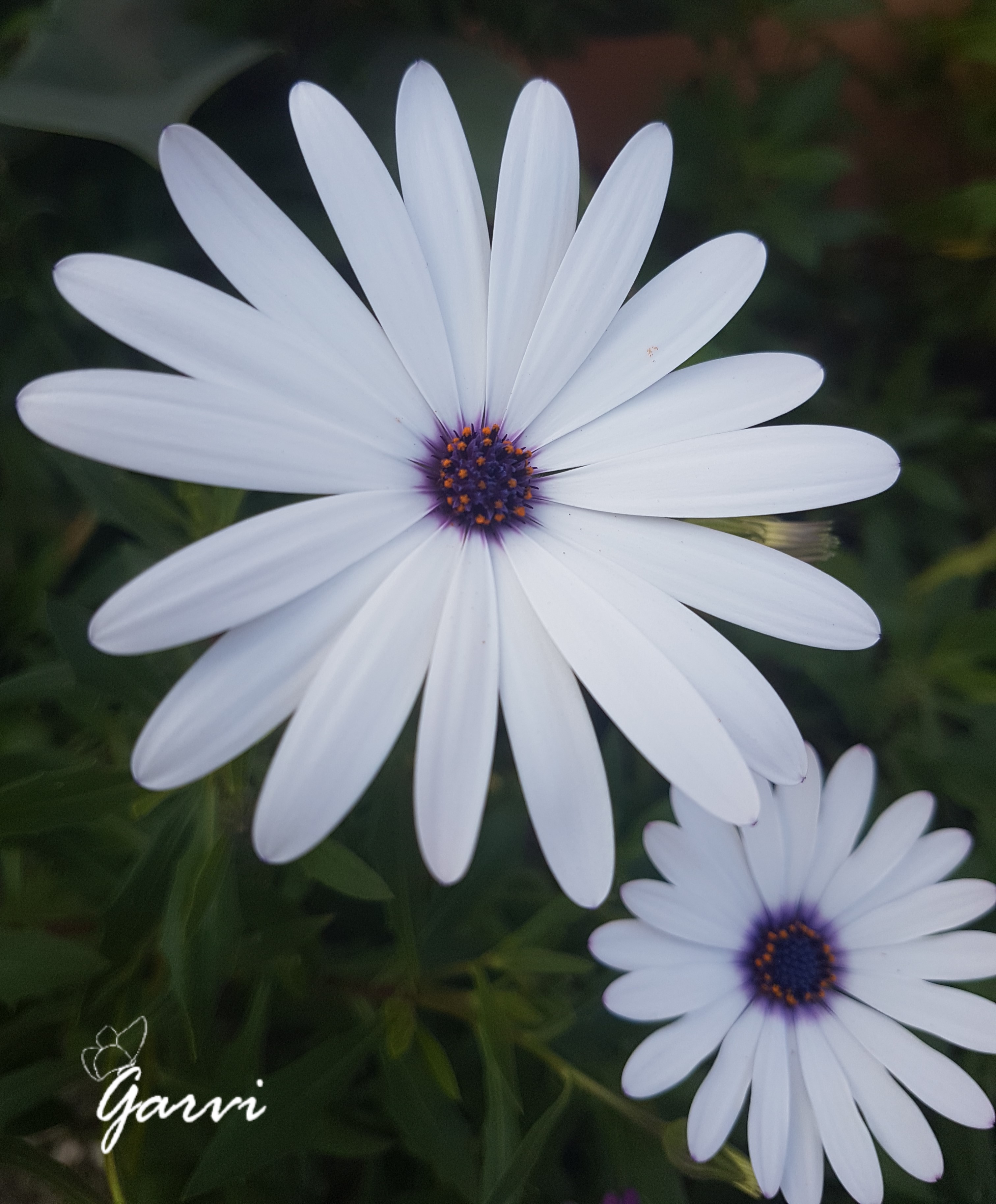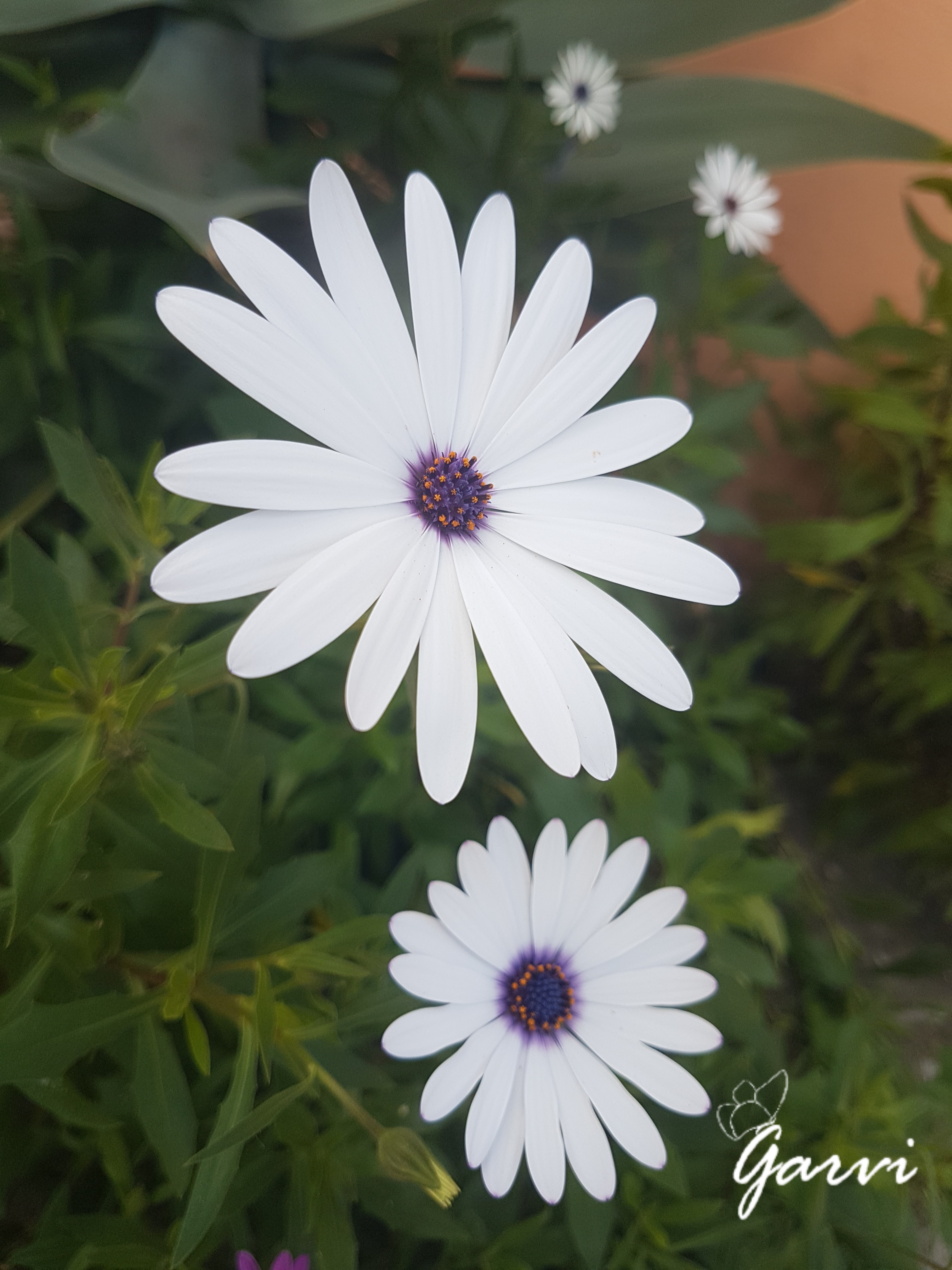 En esta ocasión son unas Gazanias blancas de centro morado o Margaritas propias, me tienen enamorada.