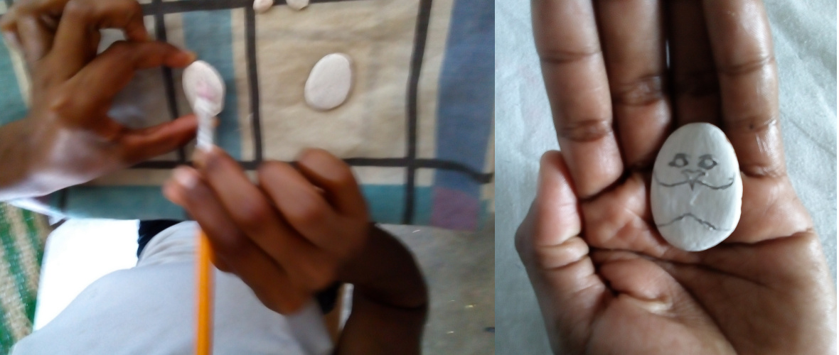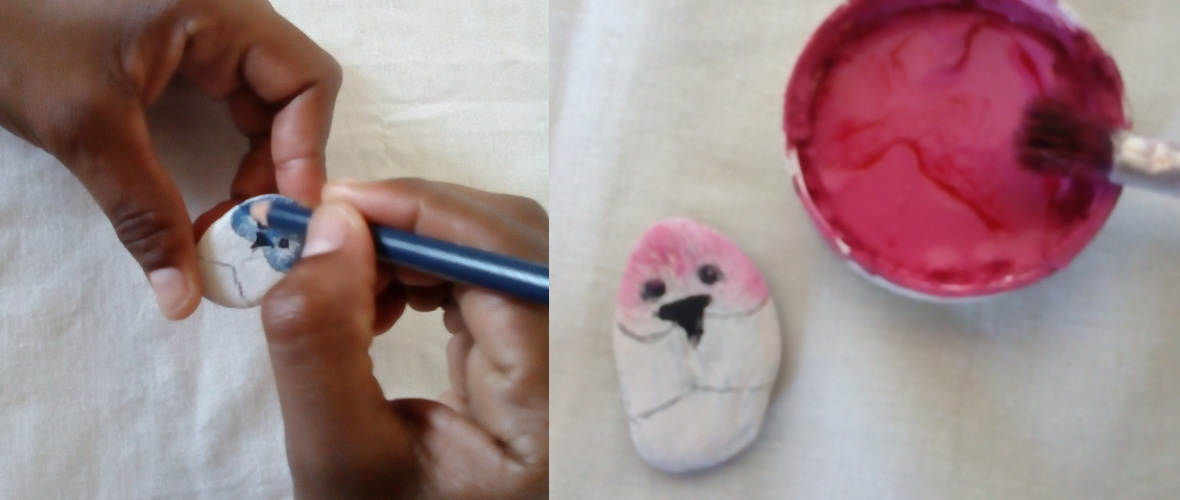 The main thing for the creation of my work was to paint the rocks completely white, for this step I used white paint and the process was easy with the help of the brush.