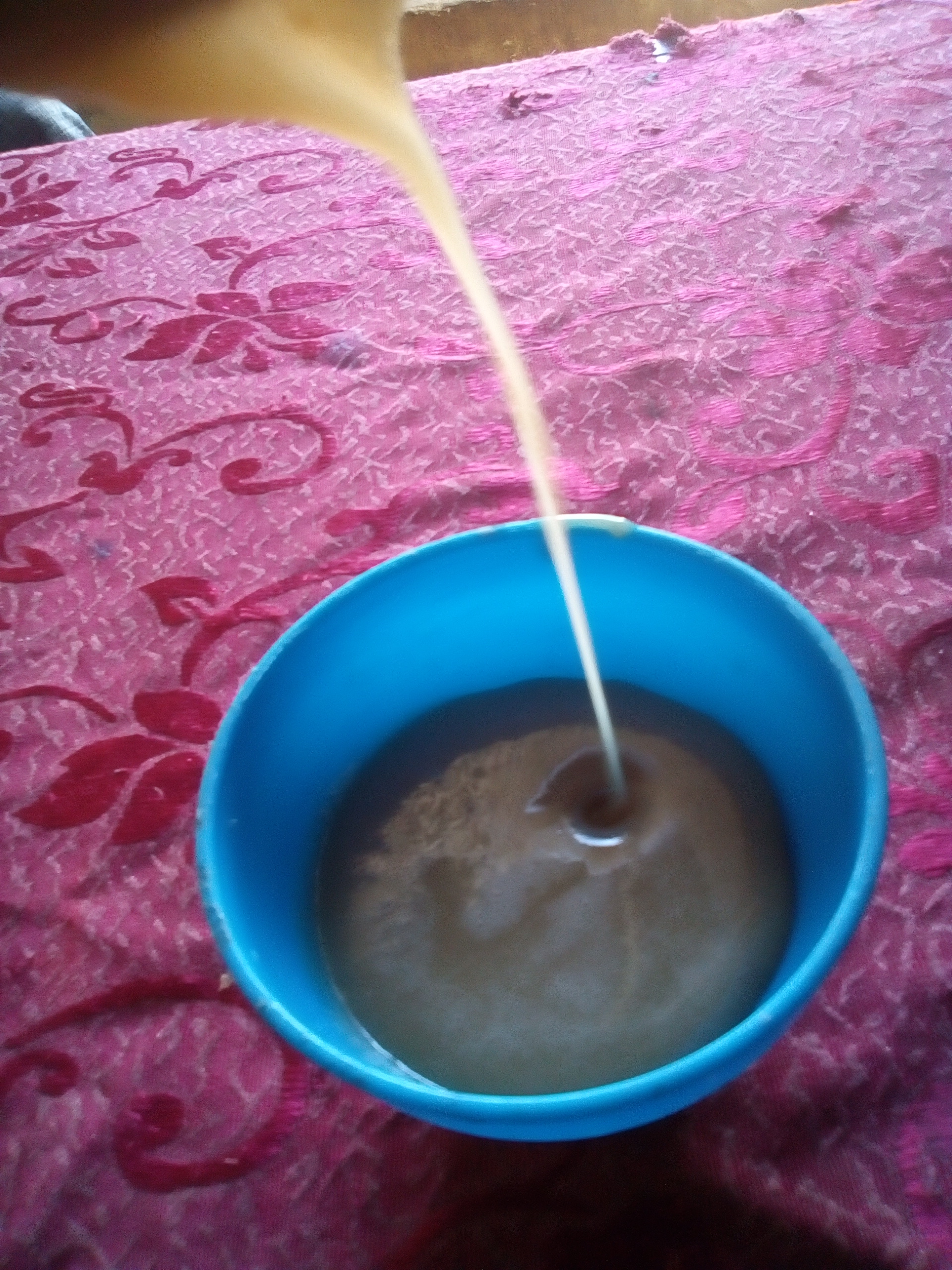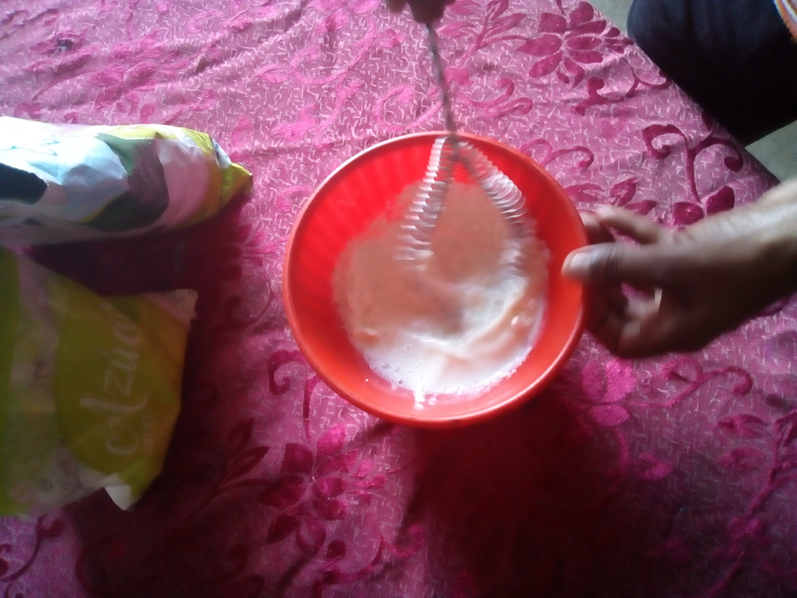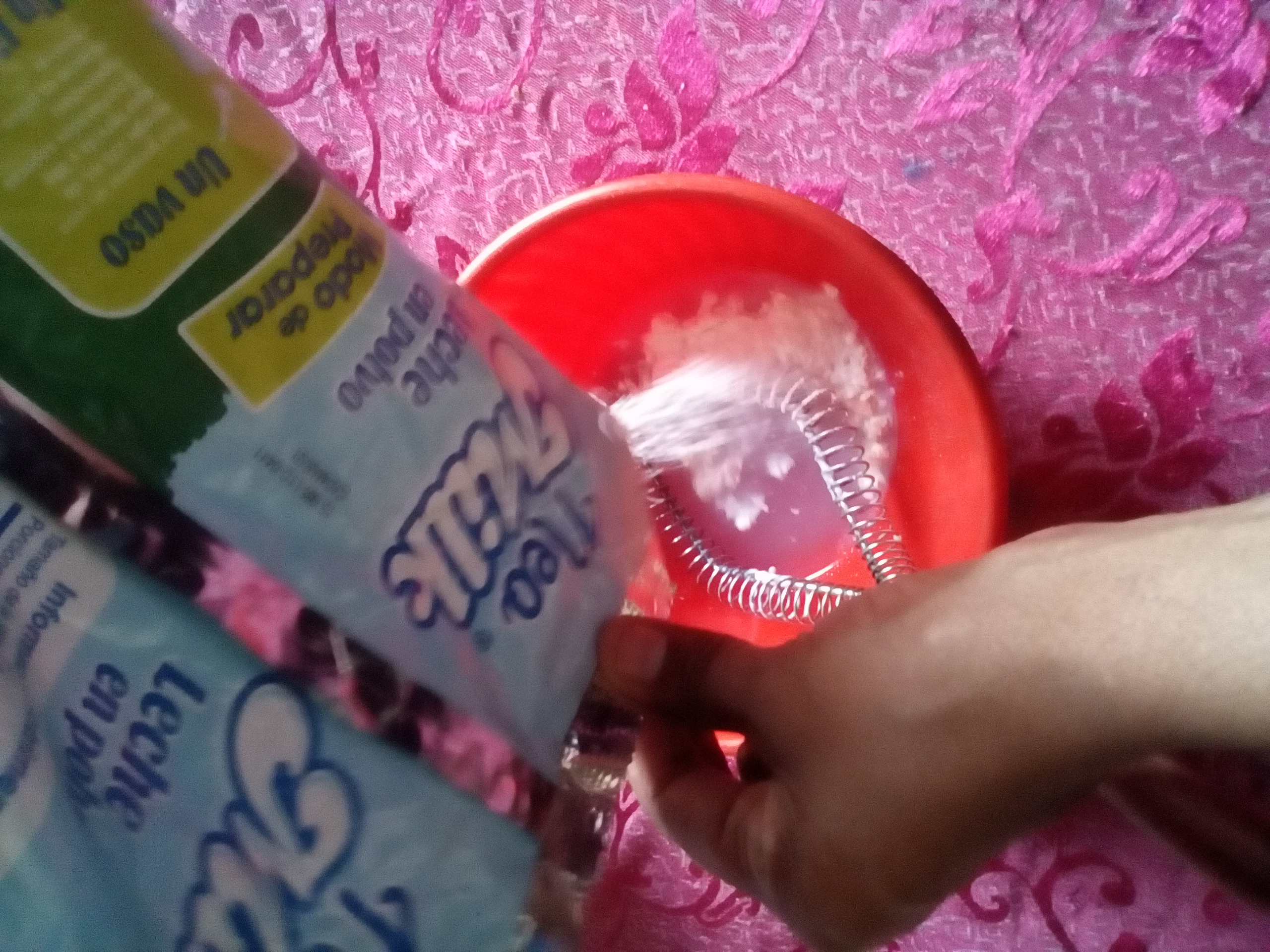 - En un molde con agua fría disolvemos la leche junto con el azúcar