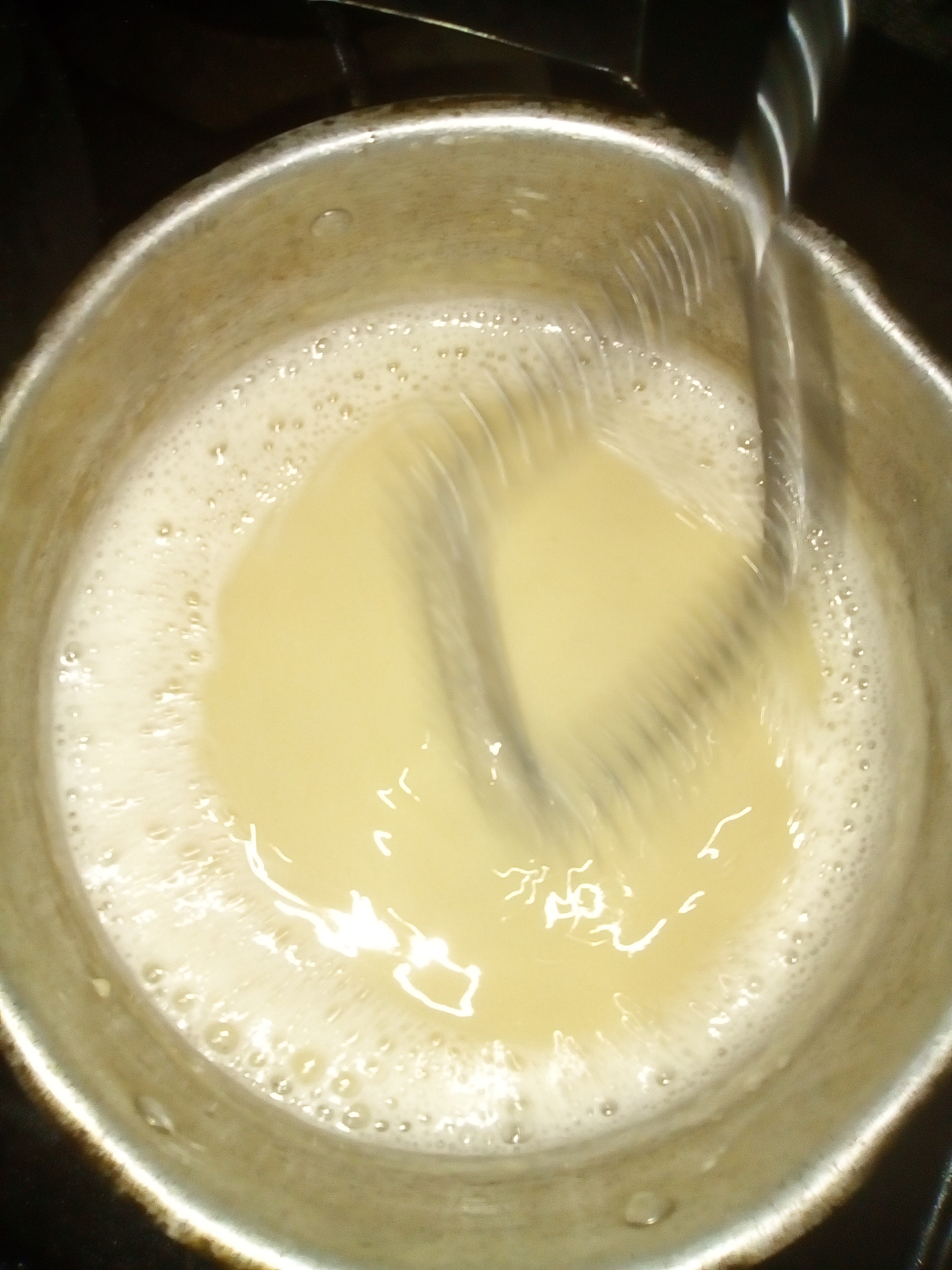 - En una caserola pequeña agregamos la mezcla disuelta anteriormente, llevamos al fuego lento