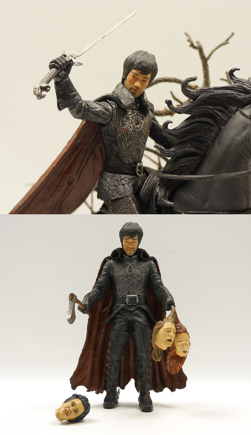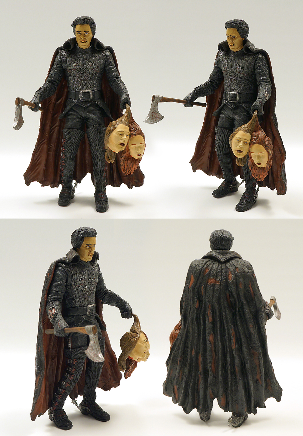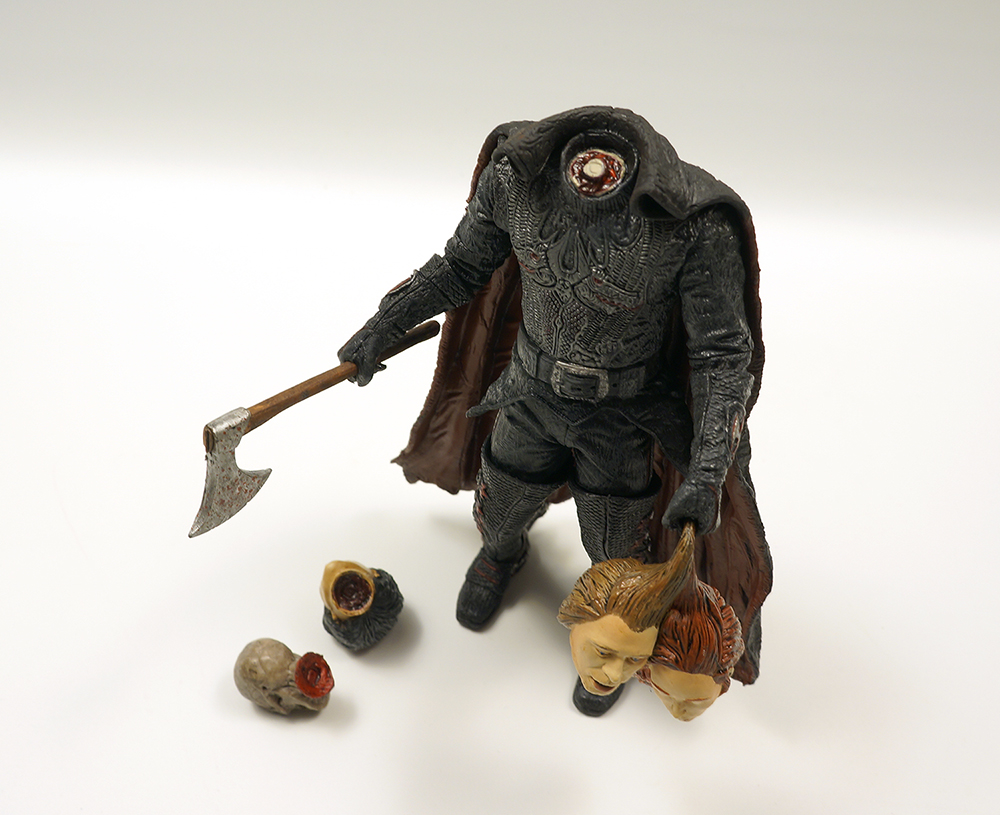 이렇게 바디에는 잘린 목의 단면이 표현되어 있습니다. 호스맨을 연기한 크리스토퍼 워컨의 극중 헤드와 살이 붙기 전의 해골 헤드 그리고 희생당한 잘린 머리2개 묶음, 무기로는 도끼가 부속되어 있습니다. 해골헤드는 디럭스박스세트의 호스맨에게 주기로 하고 간단히 일반 헤드만 결합해 찍었습니다.