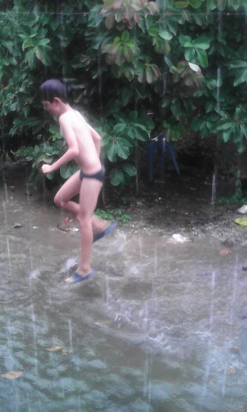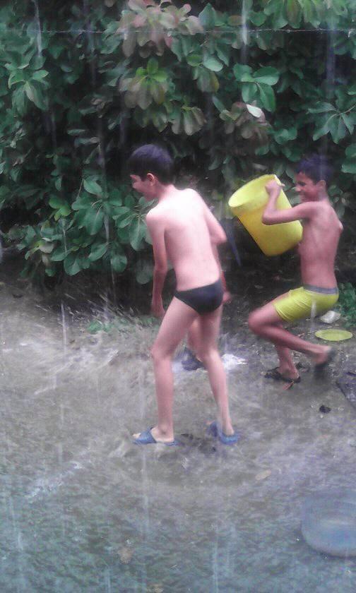 Mis niños son un poco tímidos incluso conmigo que soy su madre, pero esta lluvia puso a volar su imaginación y entre ellos mismo dijeron vamos a bañarnos como si estuviésemos en un rió y bueno yo no soy quien para impedir que disfruten a su manera, al contrario mi meta es que sean los niños más felices del mundo , momentos como este no pueden dejar de ser captados a pesar que estoy segura que de su mente jamás serán borrados, aun así ver estas imágenes una y otra vez me llenan, me nutren para seguir luchando por ellos y hacer de su infancia la mas bello posible.