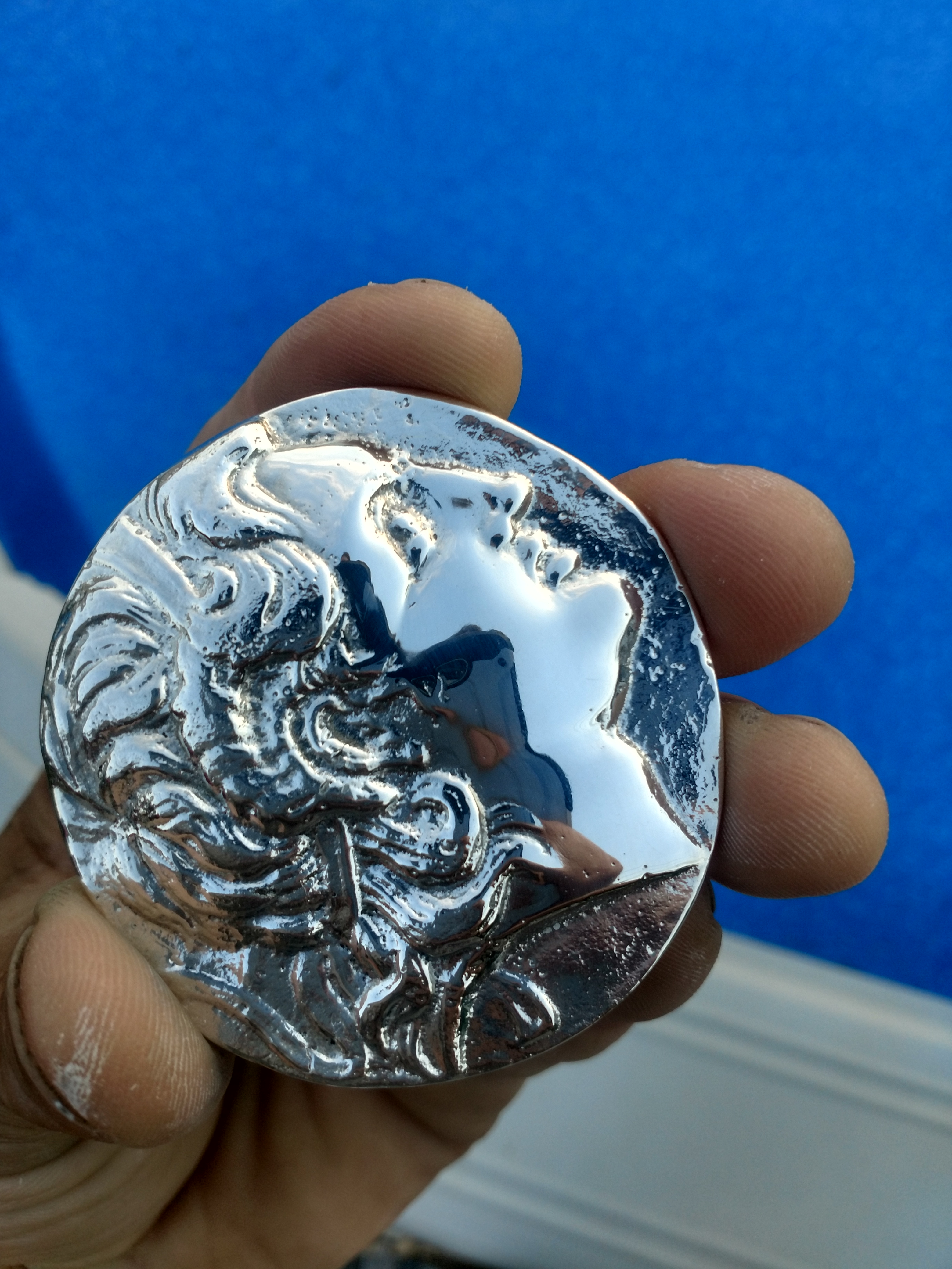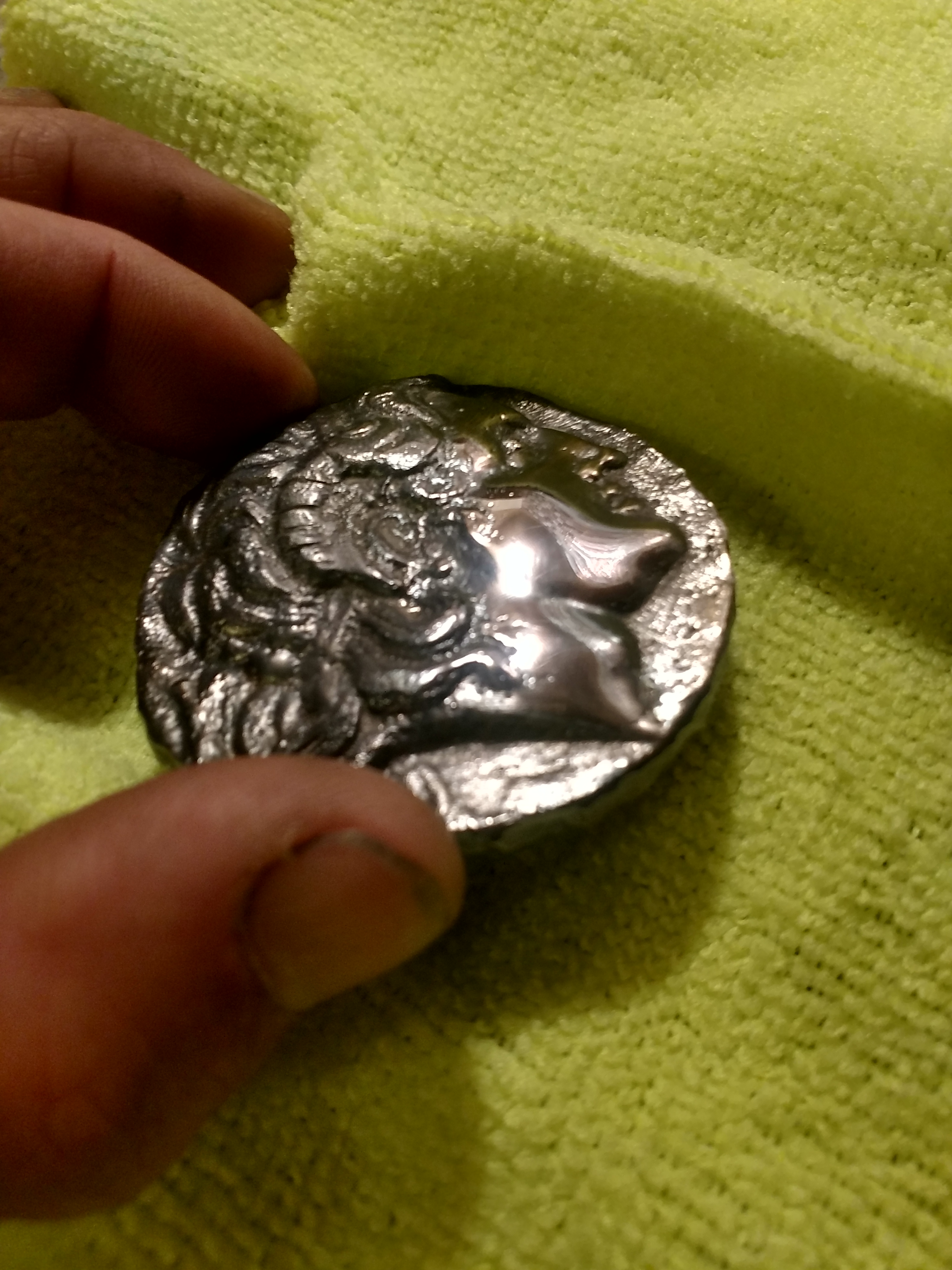 This completely polished Alexander was sold to a coin dealer. This one wound up getting a satin antique finish. I like to polish the face even if it's getting a satin finish. This process removes pits and imperfections from the pour. This is a difficult lengthy process but the end result is ridiculous!!