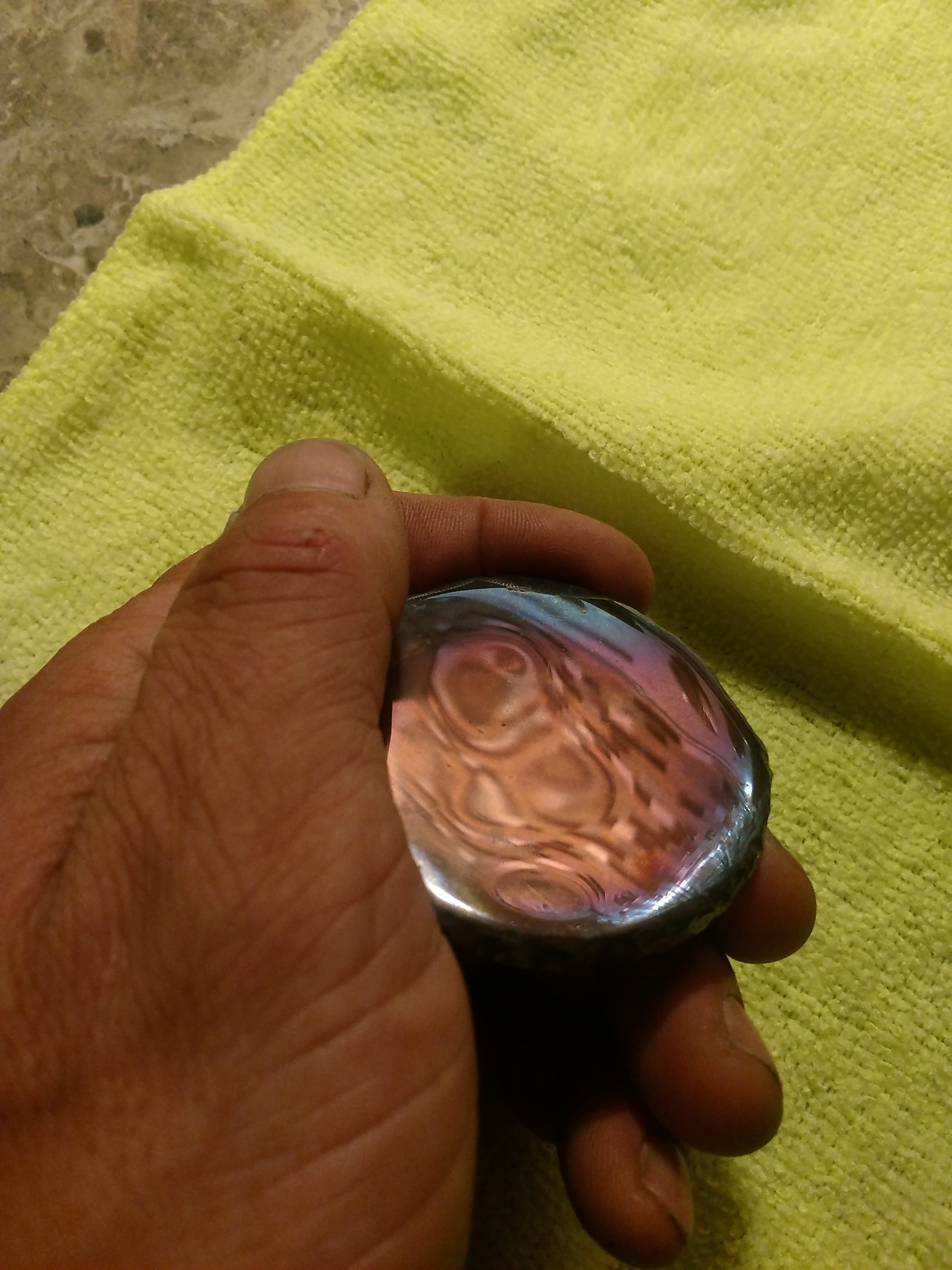 Here's a pic of the reverse. It's polished as well but might not stay that way and is certainly not going to be that rainbow color unless someone really wants it.