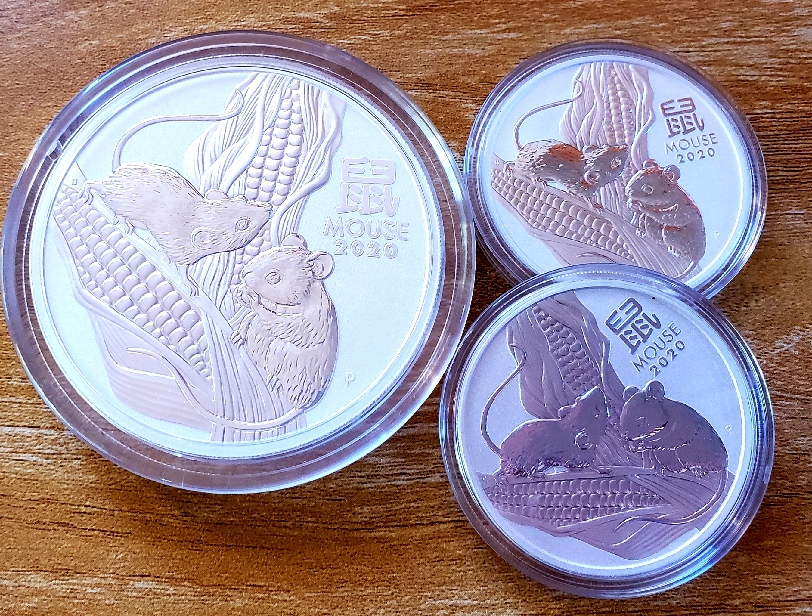 This is the 5 Oz 2020 Lunar Mouse Silver coin from the Perth Mint. I included the 1 oz for size comparison