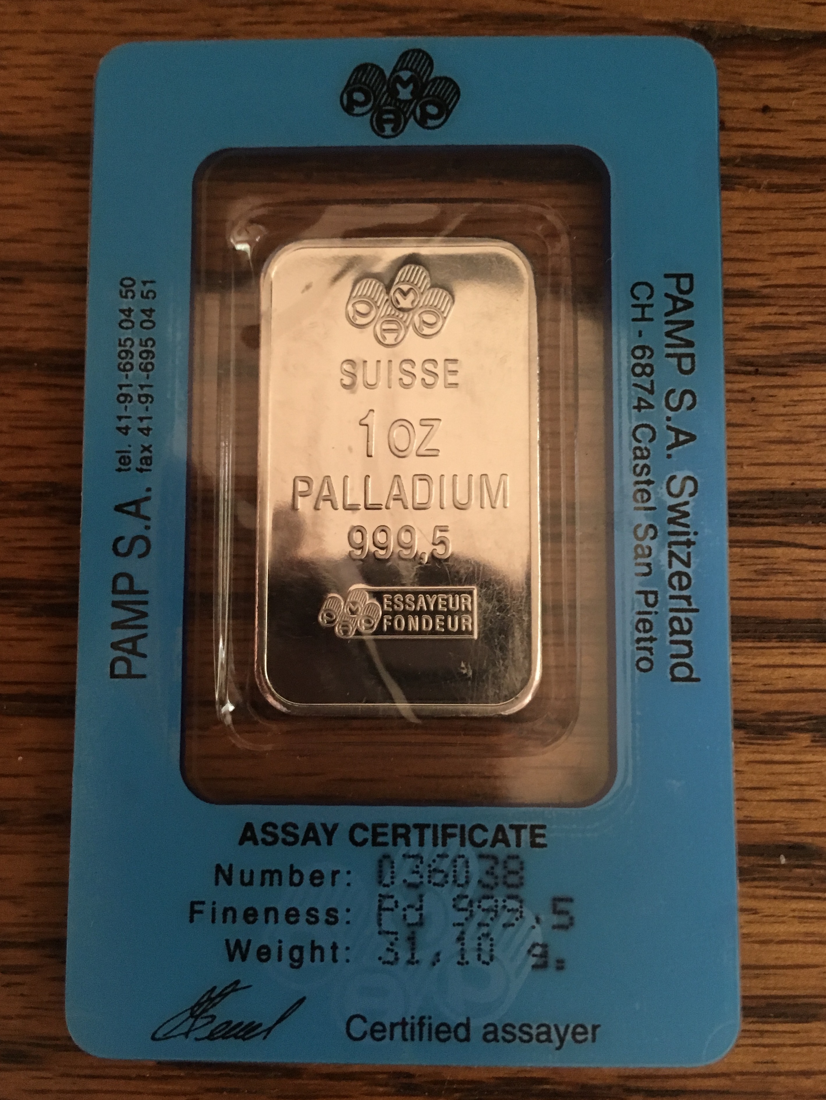 Hi guys, I just wanted to show you my One Oz. Pamp Swisse Palladium bar.