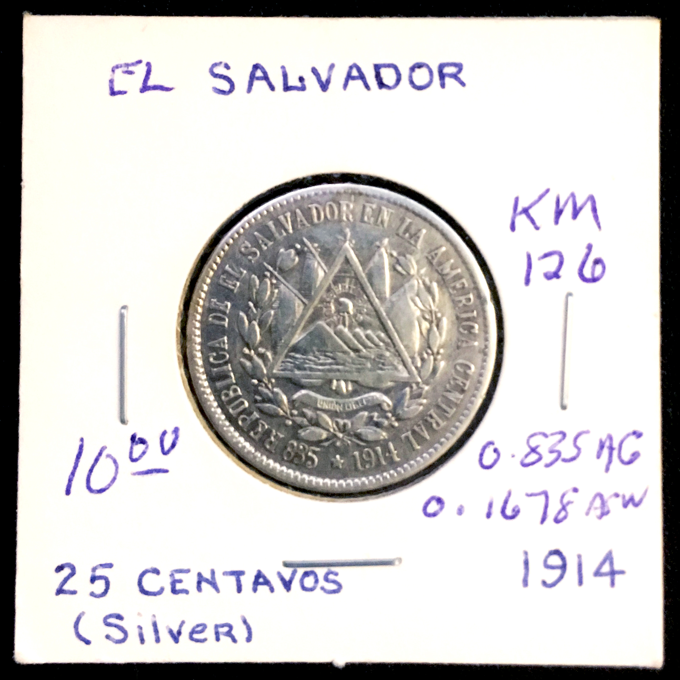 And, now, the second coin. The owner of a place where I stayed in San Salvador had a large bag of these coins. I took a few because El Salvador switched to the $USD as their circulating currency.