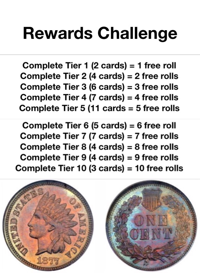 It’s gonna be called Virtual Coin Collecting or VCC, on VCC you will be able to purchase rolls of coins through your steem account and you will be able to sell and buy coins off of the marketplace. I have decided to start this project small after talking to developers and that was gonna be very, very expensive! It will also only be available to SSG members! So I will be running everything manually on discord. The way it will run is you will join the VCC discord, then you will be able to purchase rolls of 5 coins for 1 steem, you can DM me or there will be a Buy page and just comment that you want to buy rolls. Then just pay through your steem account, once that is done I will send the coins to your discord PM. The coins are all in a excel database, each coin has its unique number and will be pulled at random by a number generator. The random number history can be seen at any time. The coins will be released in sets,(one set per month) with the 1859-1909 Indian Head pennies first, then half dimes, dimes etc. Everytime a new set is released there will be a contest to run for the first 2 weeks of the coins release. Each card will have a assigned Tier according to its true mintage. The tiers will go from 1 to 10 with 10 being the rarest. Each tier has a set amount of points. After the 2 week contest concludes, the person with the most points will win 90% of all steem made from rolls bought. At that time the next date will be set for next release, probably about a 2 week period. There will also be “Rewards Challenge” it will always be on going. Each Tier has a set amount of “Free Rolls” you can earn by completing tiers. These rewards can be held till the following release.