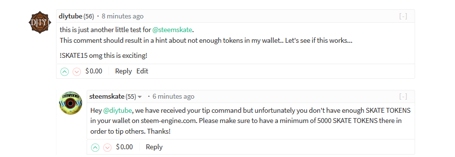 Trying to tip SKATE TOKENS with less than 5,000 Tokens in you wallet.