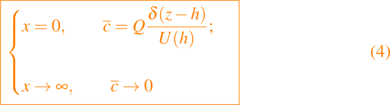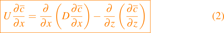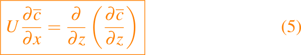 Simplificamos aún más el problema bidimensional examinando la solución en una escala de longitud x que es grande en comparación con la altura de la chimenea h, y obviamos las segundas derivadas con respecto a x en comparación con aquellas con respecto a z para que la ecuación dada en (2) se reduzca a