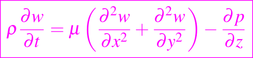 y la ecuación de difusión-convección dada al inicio es el modelo apropiado (con f = 0). Otro ejemplo de la mecánica de fluidos es el de un flujo viscoso unidireccional q = [0, 0, w(x, y)] como en una tubería o canal. Entonces la ecuación siguiente se satisface