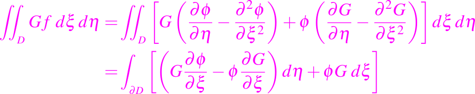 Así, G(x, t, ξ, η) satisface la ecuación adjunta en las variables ξ y η de modo que tenemos la siguiente ecuación: