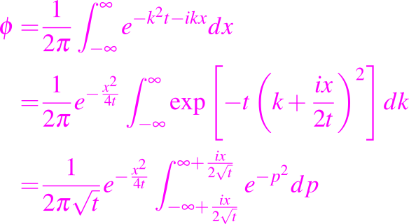 no contiene ninguna singularidad del integrando, y tiene el valor raíz cuadrada de π. Así la solución fundamental de la ecuación de difusión es
