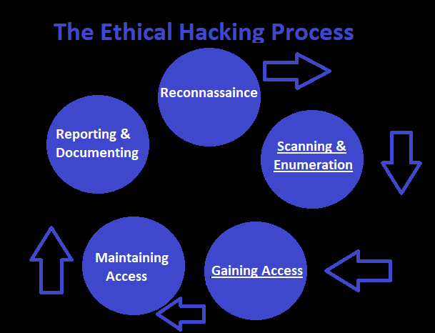 Any type of legitimate hack, be it of virtue or spite, has a process in which it should be conducted. Today, I would like to take these few moments of your time, one so as to show you the methods that practices that attackers will take, to invade your devices, lives, etc. Perhaps more importantly, if you are following along with these guides for more than just informational reading, and rather personal use, this is where you will learn the steps that you as a hacker, be it ethical or not, should always take, at least into consideration. I have created the image below to illustrate the process clearly.