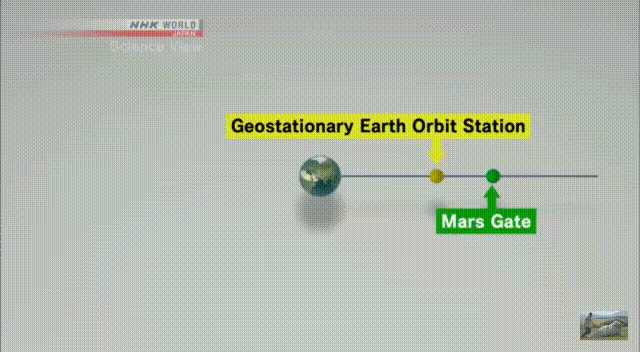Moving above the length, at an altitude of 57,000 km there will be another station which will be called the Mars Gate. Due to its distance from earth, it will be moving around earth 1.5 times faster than the station at the geostationary orbit. This speed will be used to launch spacecraft to Mars.