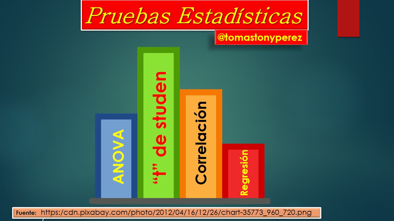 - Prueba T de Student, (comparación de promedios para dos grupos);