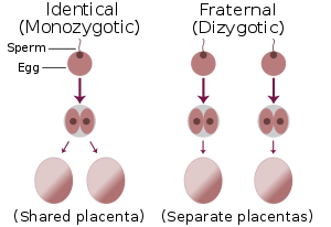 All the same, in few cases of multiple births, once the matured ovum is fertilized by the sperm, it splits into two identical cells which normally develop into respective embryos. Despite the fact that two separate embryos are formed, however, both of them share the same placenta till birth. Because these babies were formed from a zygote, they are known as identical or monozygotic twins. The unique thing about identical twin is that they are always of the same sex and possesses the same inherited characteristics.