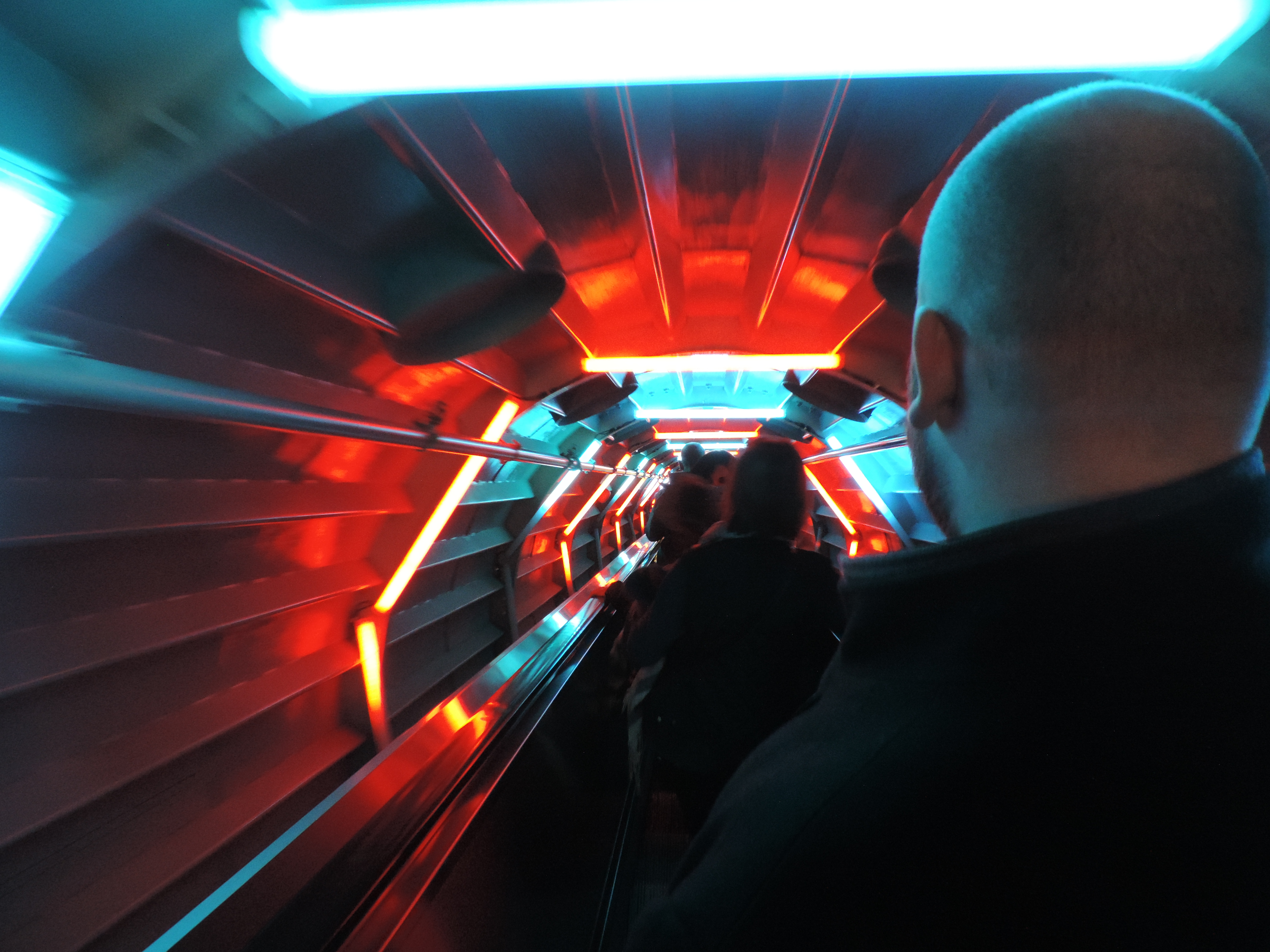 The building is 102 meters high, made entirely of steel and aluminum, and serves as a museum with permanent and seasonal exhibitions. The permanent exhibition is about the history of the building, the expo, and the presence of the Atomium in pop culture. At the very top, in the highest situated atom, there is a viewpoint and a restaurant. You can get there by a quick elevator, or traverse the building "atom by atom" thanks to stair escalators, decorated with futuristic lighting.
