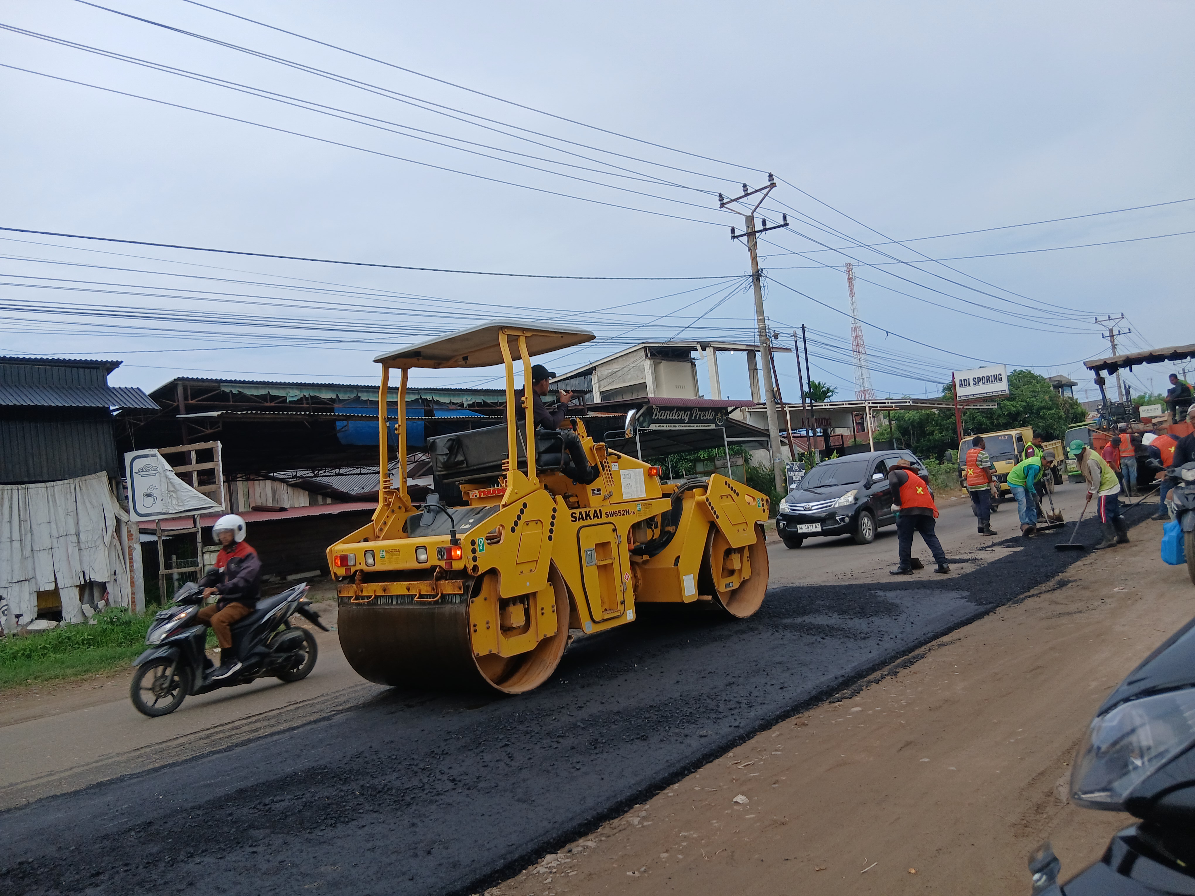 Sore hari tadi kami pun melintas di jalan Medan banda aceh tepatnya di krueng geukuh, kebetulan jalan pun sedang di perbaiki kami pun singgah sebentar sambil melihat proses pengaspalan jalan tersebut.
