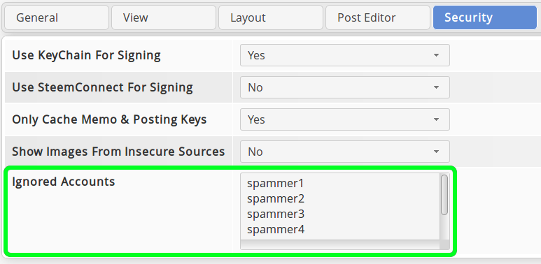 Therefore we now have a new setting to define ignored (blacklisted) accounts in Settings: