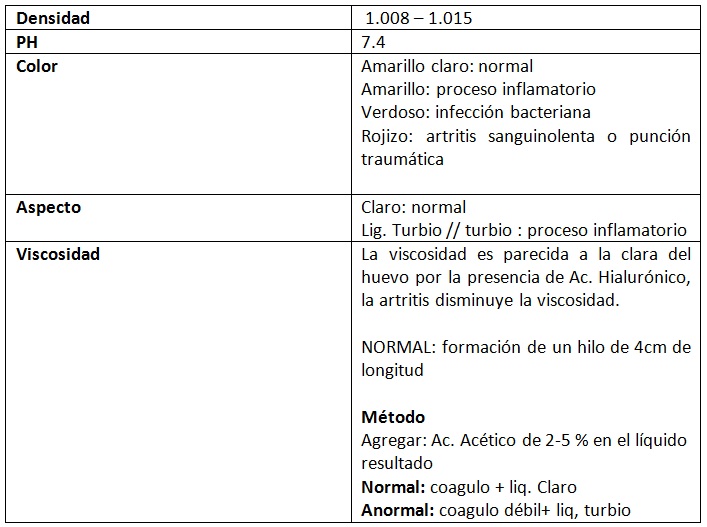 Líquido sinovial: artrocentesis: